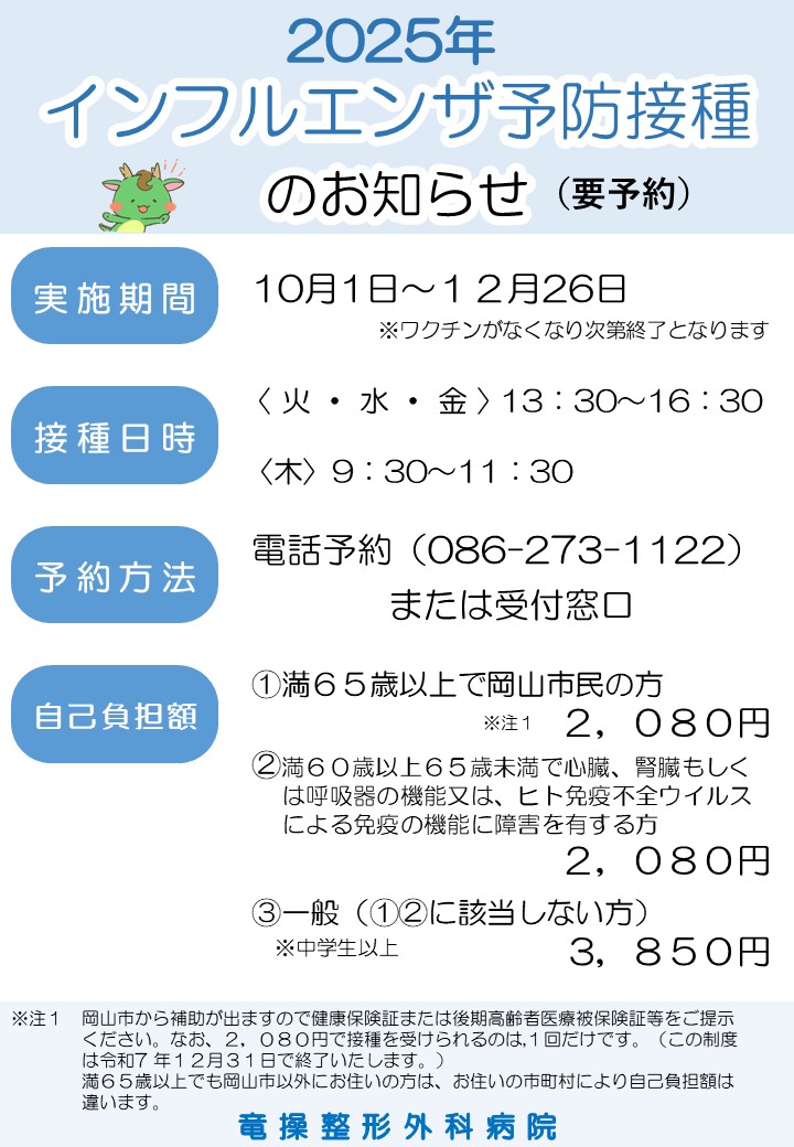 インフルエンザ予防接種のお知らせ
